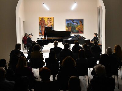 Ο Χρίστος Παπαγεωργίου και Αναστάσιος Πάππας «εγκαινίασαν» το χώρο όπου για τα Χριστούγεννα έχει προγραμματιστεί η πραγματοποίηση μιας σειράς Μουσικών Βραδιών. Στη συναυλία συμμετείχε ο Βιλέν Καραπετιάν (Κοντραμπάσο).