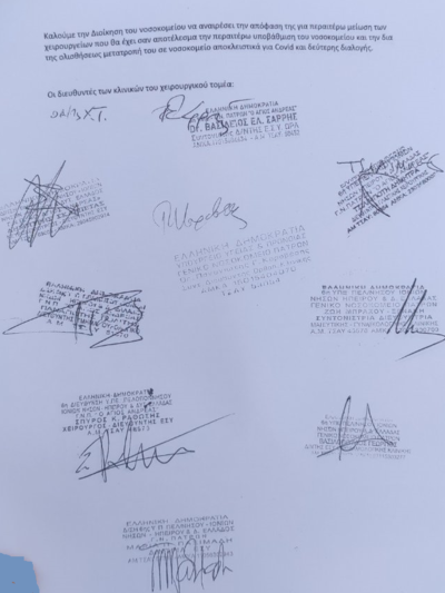 Καλούν τη Διοίκηση του Νοσκομείου να πάρει πίσω την απόφαση για περαιτέρω μείωση των χειρουργείων.