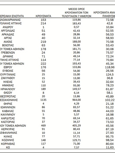 Ο συνολικός αριθμός των κρουσμάτων ανέρχεται σε 931.183 (ημερήσια μεταβολή +0.7%), εκ των οποίων 50.6% άνδρες. Με βάση τα επιβεβαιωμένα κρούσματα των τελευταίων 7 ημερών, 117 θεωρούνται σχετιζόμενα με ταξίδι από το εξωτερικό και 2.621 είναι σχετιζόμενα με ήδη γνωστό κρούσμα.