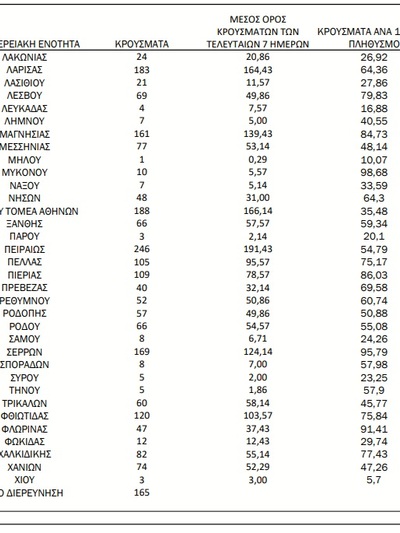 Οι νέοι θάνατοι ασθενών με COVID-19 είναι 104, ενώ από την έναρξη της επιδημίας έχουν καταγραφεί συνολικά 18.067 θάνατοι. Το 95.4% είχε υποκείμενο νόσημα ή/και ηλικία 70 ετών και άνω.
