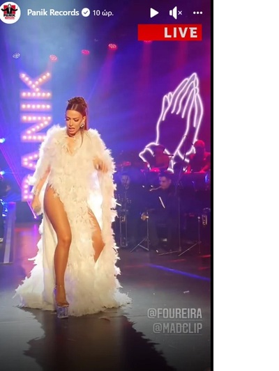 Με το δικό της αποκαλυπτικό τρόπο γιόρτασε η εκρηκτική Ελένη Φουρέιρα τη μεγάλη συναυλία για τα 10 χρόνια της Panik. Εμφανίστηκε στη σκηνή του «Ελληνικού Κόσμου» ερμηνεύοντας το λικνιστικό hit της Γιουροβίζιον Fuego και μετά συγκίνησε άπαντες καθώς στη μνήμη του φίλου της, Mad Clip τραγούδησε το ντουέτο τους«Μπορεί» αποκαλώντας το «το τραγούδι που με σημάδεψε». Όμως δεν ήταν το ρεπερτόριο που έκανε άπαντες να ξαμιλούν για εκείνη, αλλά το θεαματικό της outfit. Φόρεσε ένα μανδύα από φτερά με σκισίματα στα πόδια που έφθαναν ως τη μέση ξεσηκώνοντας τη φαντασία για την εσωτερική της γύμνια. Αξεσουάρ γυάλινες πλατφόρμες.