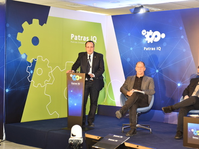 Στην συνέχεια, στην επίσημη έναρξη της εκδήλωσης του Patras IQ, την κεντρική ομιλία είχε ο κ. Άδωνις – Σπυρίδων Γεωργιάδης, Υπουργός Ανάπτυξης & Επενδύσεων, ενώ χαιρετισμούς απηύθυναν οι κ. Κατσανιώτης Ανδρέας, Υφυπουργός Εξωτερικών, κ. Νεκτάριος Φαρμάκης Περιφερειάρχης Δυτικής Ελλάδας, μέλος της Οργανωτικής Επιτροπής Patras IQ, (μέσω τηλεδιάσκεψης),ο Αντιδήμαρχος κ. Ασπράγκαθος Νικόλαος, ως εκπρόσωπος του Δήμου Πατρέων, κ. Πλάτων Μαρλαφέκας, Πρόεδρος ΔΣ Επιμελητηρίου Αχαΐας και Μέλος της Οργανωτικής Επιτροπής Patras IQ και ο Καθ. Χρήστος Μπούρας, Πρύτανης Πανεπιστημίου Πατρών, που κήρυξε και την επίσημη έναρξη της έκθεσης