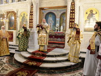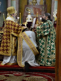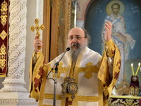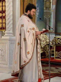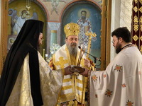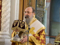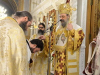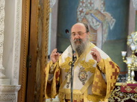 Ἀπευθυνόμενος πρός τόν χειροτονηθέντα Πρεσβύτερo, τόν συνεχάρη γιά τήν ὑψίστη τιμή καί εὐλογία πού ἒλαβε ἀπό τόν Θεό, νά καταστῇ λειτουργός τῶν θείων καί Φρικτῶν Μυστηρίων καί μίλησε γιά τό μέγα Δεῖπνο στό ὁποῖο μᾶς καλεῖ ὁ μέγας Οἰκοδεσπότης.