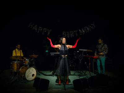 Ηθοποιός και μουσικοί συμπράττουν επί σκηνής δημιουργώντας ατμοσφαιρικές ηλεκτροδυναμικές «αφηγήσεις».