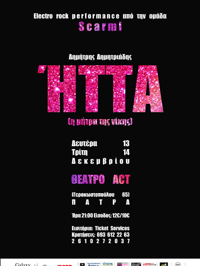 H Electro rock performance από την ομάδα Scarmi με τίτλο «Ήττα» (η μήτρα της νίκης) παρουσιάζεται στο θέατρο act, στο πάνω μέρος στις σκάλες Γεροκωστοπούλου, στην Πάτρα, απόψε Δευτέρα 13/12 και την Τρίτη 14/12/2021 στις 21.00.