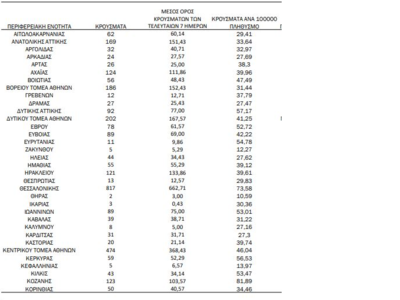 To ?? για την επικράτεια βάσει των κρουσμάτων εκτιμάται σε 0.93 (95% ΔΕ: 0.86 – 1.02)