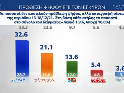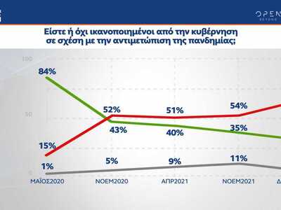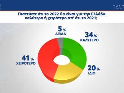 Στη δημοσκόπηση καταγράφεται, επίσης, δυσαρέσκεια των πολιτών για τη διαχείριση της πανδημίας του κορονοϊού από την κυβέρνηση με το 63% να δηλώνει δυσαρεστημένο ενώ το 41% θεωρεί ότι το 2022 θα είναι χειρότερο για την Ελλάδα από το 2021.