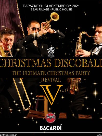 To Christmas Discoball είναι ένα από τα event που αποτελούν σημείο αναφοράς για την πόλη την περίοδο των Χριστουγέννων με μεγάλη προσέλευση κόσμου η οποία το καθιστά ένα από τα must των εορτών και της διασκέδασης. Φέτος το Christmas Discoball- επανέρχεται δυναμικά στο Beau Rivage – Public House Ρ. Φεραίου 79. Η ατμόσφαιρα της εκδήλωσης θα έχει, ένα glamourous χριστουγεννιάτικο χαρακτήρα, μουσική Disco που μας μεταφέρει στην αστραφτερή εποχή των 70`s, welcome drinks, free drinks, free finger food, late night pasta με περιορισμένο αριθμό προσκλήσεων.
