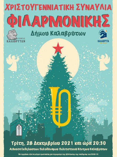 Μία ξεχωριστή Χριστουγεννιάτικη Συναυλία στο πνεύμα των άγιων και γιορτινών ημερών που διανύουμε, θα πραγματοποιήσει η Φιλαρμονική του Δήμου Καλαβρύτων την ερχόμενη Τρίτη 28 Δεκεμβρίου 2021 στις 20.30 στην αίθουσα εκδηλώσεων του Πολυδύναμου Πολιτιστικού Κέντρου της ιστορικής και μαρτυρικής πόλης των Καλαβρύτων.