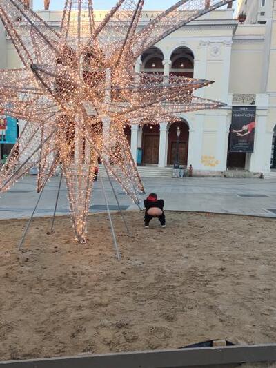 Μια άλλη πιθανή χρήση της άμμου που στολίζει την πλατεία Γεωργίου και μέσα της έχει τοποθετηθεί το αστέρι βρήκε ένας πιτσιρικάς, ο οποίος χρησιμοποίησε την άμμο για να ...κάνει την ανάγκη του!