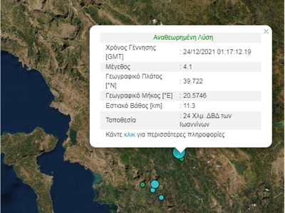 Ασθενής σεισμική δόνηση 4,1 βαθμών της κλίμακας Ρίχτερ σημειώθηκε κοντά στην πόλη των Ιωαννίνων τα ξημερώματα. Συγκεκριμένα ο σεισμός καταγράφηκε στις 03:17 τα ξημερώματα κοντά στη Ζίτσα.