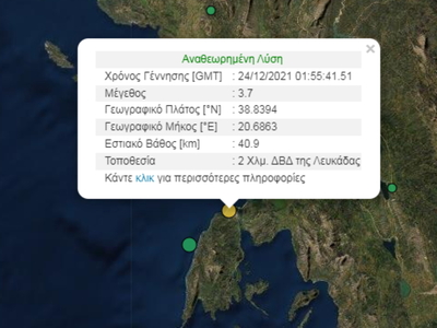 Ο σεισμός καταγράφηκε στις 03:55 τρία χιλιόμετρα ανατολικά-νοτιοανατολικά της πόλης της Λευκάδας, ενώ το εστιακό βάθος ήταν 40,9 χλμ, όπως ενημέρωσε το Γεωδυναμικό Ινστιτούτο του Εθνικού Αστεροσκοπείου Αθηνών