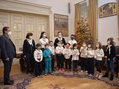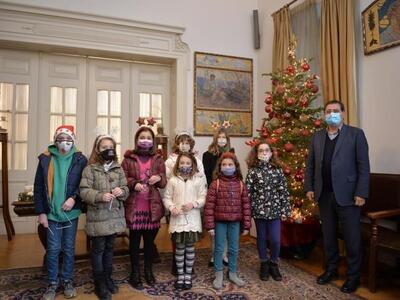 Το Δημαρχείο της Πάτρας γέμισε σήμερα, Παραμονή Χριστουγέννων, από κάλαντα και ευχές, μετά την «σιωπή» της προηγούμενης χρονιάς λόγω καραντίνας.