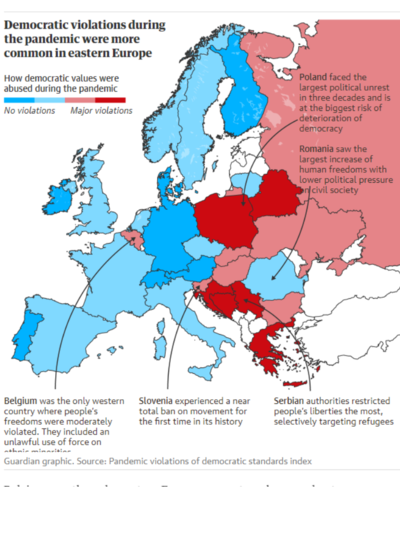 Η έρευνα ανέδειξε επίσης το γεγονός ότι κάποιες από τις χώρες της ανατολικής Ευρώπης με ιστορικό προηγούμενο στις παραβιάσεις δημοκρατικών ελευθεριών η πανδημία αποτέλεσε πρόφαση για περαιτέρω αντιδημοκρατικά μέτρα.
