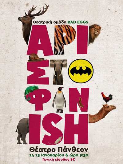Μία ολοκαίνουρια παράσταση ετοιμάζει η θεατρική ομάδα Bad Eggs και πρόκειται να την παρουσιάσει όπως είδαμε σε ανάρτηση στο facebook του θεάτρου act, για ένα διήμερο, την Παρασκευή 14 και το Σάββατο 15 Ιανουαρίου 2022 στις 21.30 στο θέατρο Πάνθεον στη Δημ. Γούναρη και Κανακάρη. Τίτλος της πρωτότυπης παράστασης είναι «Αριστοφανish».