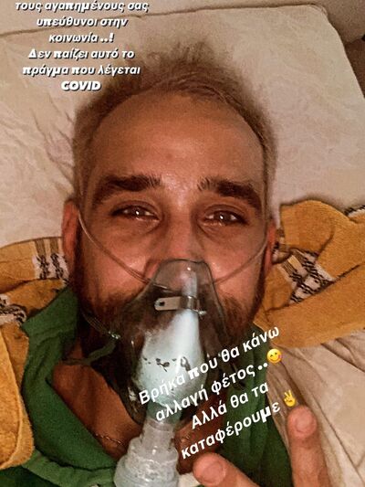 Ο γνωστός τραγουδιστής το περνάει αρκετά δύσκολα, καθώς όπως θα δεις στη φωτογραφία που δημοσίευσε ο ίδιος στα Instagram Stories του βρίσκεται στο σπίτι του με οξυγόνο. «Να προσέχετε τους εαυτούς σας και τους αγαπημένους σας, υπεύθυνοι στην κοινωνία…!
