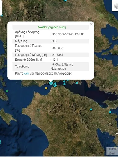 Σεισμική δόνηση αισθητή στην Πάτρα στις 3.02 το μεσημέρι της Πρωτοχρονιάς. Ο σεισμός είχε μέγεθος 3,3 Ρίχτερ και εντοπίζεται Νοτιοδυτικά της Ναυπάκτου.