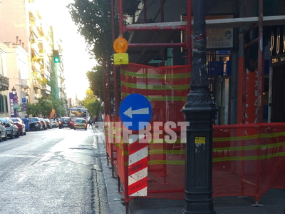 Μία από τις περιπτώσεις, όλο και περισσότερες πλέον, που έχουμε «τύφλωση» του πεζοδρομίου συνεπεία οικοδομικής δραστηριότητας ή λόγω πτώσεως σοβάδων. Είτε μιλάμε για ιδιωτικές κατασκευές είτε δημόσια και δημοτικά κτίρια.