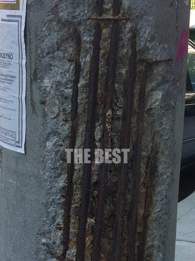 Αν κανείς έχει απορία για το πως κατασκευάζονται οι κολόνες της ΔΕΗ, ιδού η απάντηση: Μπετόν και ένας πυκνός κορμός από σιδερόβεργες για να τη στηρίζουν. Αγνοούμε αν η συγκεκριμένη κολόνα στην οδό Παναχαϊκού έχει «αποκαλύψει» τον εσωτερικό της κόσμο για να λύνεται η προαναφερθείσα απορία ημών και υμών ή απλά έχει υποστεί ζημιά με το πέρασμα των χρόνων και ενδεχομένως με την παρέμβαση ανθρώπινου παράγοντα. Και μια νέα απορία: Είναι επικίνδυνη έτσι όπως είναι;
