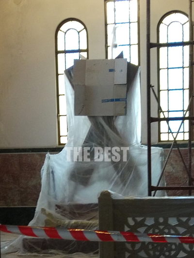 Τα ιερά κειμήλια της ορθοδοξίας ενίοτε κινδυνεύουν και από τους σοβάδες! Καλή ώρα το τμήμα του σταυρού του αγίου Ανδρέα, που φυλάσσεται στον νέο Ι.Ν., στο αριστερό κλίτος. Και που πολλές φορές, κατά τη διάρκεια εργασιών συντήρησης (όπως η πρόσφατη εδώ), προφυλάσσεται από τους σοβάδες ως εξής!