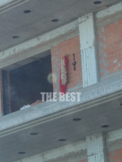Σε νεοαναγειρόμενη οικοδομή το συγκεκριμένο «κρεμαστάρι» στον 2ο όροφο. Μια σκελίδα σκόρδο κρέμεται, σε κόκκινο φόντο. Προφανώς, καθώς το σπίτι δεν κατοικείται ακόμα, δεν αφορά σε σκόρδα έτοιμα για φάγωμα, αλλά για το «κακό το μάτι». Καλότυχο νά’ναι λοιπόν το σπίτι, μαζί και οι νοικάρηδες!