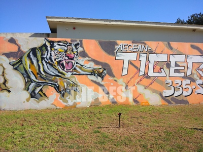 Όχι δεν είναι ένα ακόμα γκράφιτι σε κάποιο σημείο της πόλης, σε κάποια ακάλυπτη επιφάνεια. Είναι σε μέρος που δεν πάει ο νους κανενός. Το συγκεκριμένο έξοχο γκράφιτι κοσμεί τοίχο μέσα στο στρατόπεδο της 116 Π.Μ. στο αεροδρόμιο του Αράξου. Ο τίγρης είναι το σήμα της 335 Μοίρας που εδρεύει στον Άραξο.