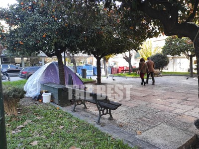 Πλατεία 28ης Οκτωβρίου στην Πάτρα. Μια σκηνή στην άκρη της πλατείας, κάτω από τα δένδρα, τυλιγμένη με ένα νάυλον για να προστατεύεται από τη βροχή, φιλοξενεί έναν άνθρωπο. Η μοναξιά δεν αντέχεται, όμως, ούτε κάτω από αυτές τις συνθήκες που ο βιοπορισμός και η στέγη είναι βασικά ζητούμενα. Ο άνδρας που μένει εκεί, έχει φροντίσει να στεγάσει και τον τετράποδο φίλο του. Ένα χαρτόκουτο έχει μετατραπεί σε σπιτάκι σκύλου δίπλα από τη σκηνή, με τα δυο παραπήγματα να κυριαρχούν στο χώρο, έστω κι αν τα βλέπουμε και προσπερνάμε καθημερινά...