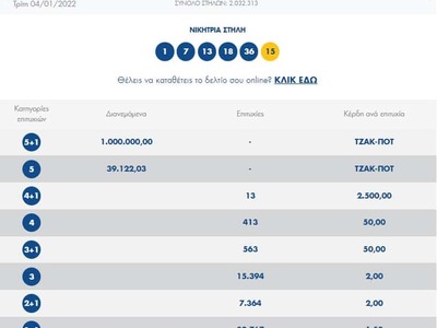 Οι τυχεροί αριθμοί: 1, 7, 13, 18, 36 και Τζόκερ το 15