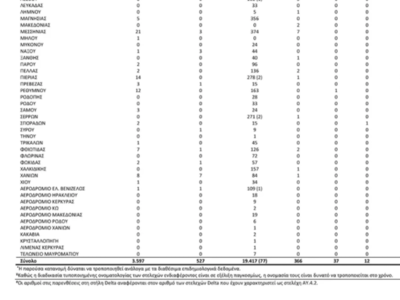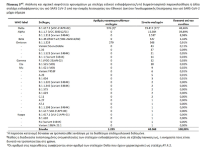 Εκ των 1.255 δειγμάτων με στελέχη ειδικού ενδιαφέροντος, τα 976 αφορούν στο στέλεχος Delta, και 279 αφορούν στο Omicron (Πίνακας 3).