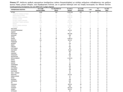 Αναλυτικά η νέα ανακοίνωση του ΕΟΔΥ για τις παραλλαγές του ιού στη χώρα