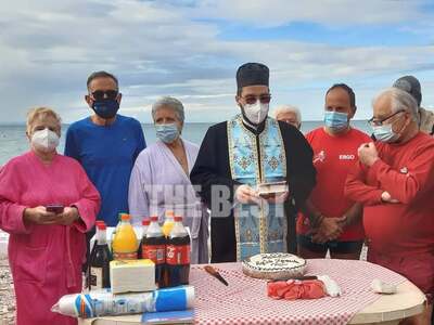 Η εκδήλωση συνδυάστηκε, με τι άλλο, με μια βουτιά στα παγωμένα νερά της θάλασσας (15-15 βαθμοί η επιφανειακή θερμοκρασία σήμερα).