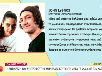 Μετά τα φιλιά που αντάλλαξε με τον Γιώργο Κατσαούνη η Μυριέλλα Κουρεντή και την κριτική που έχει δεχτεί από το κοινό, καθώς έξω από το παιχνίδι βρίσκεται σε σχέση με τον μουσικό, Γιώργο Λυγνό, εκείνος θέλησε να ξεκαθαρίσει τη θέση του και να δείξει δημόσια την στήριξή του στην αγαπημένη του.