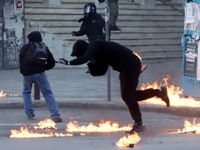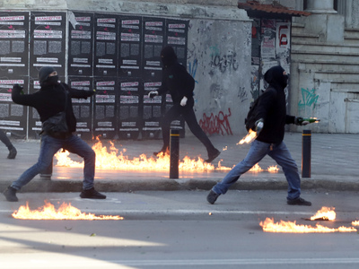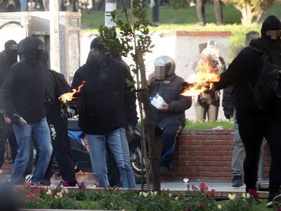 Πεδίο μάχης η Θεσσαλονίκη στην περιοχή της Καμάρας. Αντιεξουσιαστές που διαμαρτύρονται για τον τερματισμό των καταλήψεων στο Αριστοτέλειο εκτοξεύουν βόμβες μολότοφ προς τις αστυνομικές δυνάμεις.