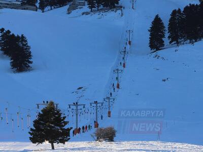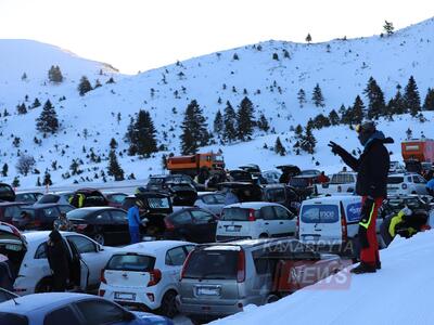 Χαρακτηριστικη είναι η εικόνα που επικρατούσε και το Σάββατο το μεσημέρι στο πάρκιγκ του Χιονοδρομικού κέντρου Καλαβρύτων