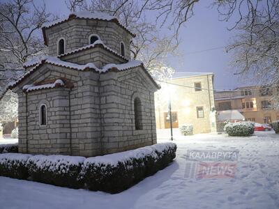 Οι χιονοπτώσεις στα Καλάβρυτα συνεχίζονται με τις προγνώσεις να κάνουν λόγο για εξασθένηση των φαινομένων από το πρωί της Τρίτης.