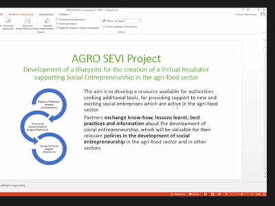 Τις εργασίες άνοιξε ο Υπεύθυνος Έργου, Σπύρος Παπασπύρου δίνοντας το περίγραμμα του έργου και την πρόοδο της υλοποίησής του που αποτέλεσε τη βάση για τη δημιουργία Σχεδίου Εικονικής Θερμοκοιτίδας για την υποστήριξη της Κοινωνικής Επιχειρηματικότητας στον τομέα της Αγρο-Διατροφής.