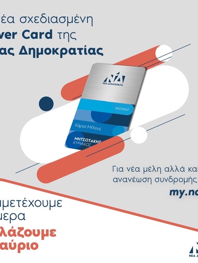 Η Νέα Δημοκρατία είναι το μεγάλο πατριωτικό μέτωπο ρεαλισμού και προόδου. Δεν ειναι απλά το μεγαλύτερο κόμμα στην Ελλάδα αλλά το μεγαλύτερο κεντροδεξιό κόμμα στην Ευρώπη. Με 140000 ενεργά μέλη εκ των οποίων τα 10000 στην Αχαΐα η ΝΔ είναι το το κόμμα που εξελίσσεται σε μια Ελλάδα η οποία αναπτύσσεται. Συνεχίζει να εργάζεται σκληρά για να βελτιώσει την ζωή όλων των Ελλήνων για να οδηγήσουμε τη χώρα με ασφάλεια στο δρόμο της ασφάλειας, της προκοπής και της ευημερίας. Ο Πρόεδρος και τα μέλη της ΔΕΕΠ καθώς και των Επτά Δημοτικών Τοπικών Οργανώσεων μαζί με εθελοντές ξεκινούν από αύριο την εκστρατεία με επισκέψεις - συναντήσεις με πολίτες στις πόλεις και τα δημοτικά διαμερίσματα.