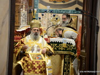 Ἀνήμερα, ὁ Σεβασμιώτατος ἐτέλεσε τήν Θεία Λειτουργία στόν ἲδιο Ναό, ἐν πληθούσῃ Ἐκκλησίᾳ, μέ τήν συμμετοχή τῶν τοπικῶν Ἐκπαιδευτικῶν Ἀρχῶν.