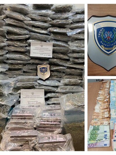 Σημειώνεται ότι η αξία ανωτέρω ποσοτήτων ναρκωτικών ουσιών υπερβαίνει το ποσό του ενός εκατομμυρίου επτακοσίων χιλιάδων ευρώ (1.700.000€). Από το Κεντρικό Λιμεναρχείο Πάτρας που διενεργεί την προανάκριση, κατασχέθηκαν οι ανωτέρω ποσότητες ναρκωτικών ουσιών, τα δύο Φ/Γ οχήματα (τράκτορες), ένα (01) επικαθήμενο, ένα (01) Ε.Ι.Χ. όχημα, πέντε (05) συσκευές κινητής τηλεφωνίας καθώς και το χρηματικό ποσό των δέκα έξι χιλιάδων εκατό ευρώ (16.100 €)".