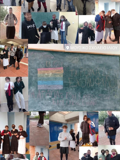 Ο πρόεδρος του 15μελούς του μουσικού σχολείου υπογράμμισε τα εξής: «Στο σχολείο μας έγινε συμβάν το οποίο λύθηκε ενδοσχολικά. Υπήρχε ένα παιδί, το οποίο ήρθε στο σχολείο με φούστα και κατά τη διάρκεια της σχολικής ημέρας, ένας καθηγητής τον βρήκε στο προαύλιο κάνοντάς του σχόλιο για την φούστα. Το σχόλιο που αναφέρθηκε και στο διαδίκτυο και που ισχύει ήταν η κουβέντα του καθηγητή προς το παιδί ότι είσαι η ντροπή της κοινωνίας. Αυτό το περιστατικό λύθηκε ενδοσχολικά και η σχολική μας κοινότητα το αντιμετώπισε. Καταρχάς να πούμε ότι δεν υπήρξε τσακωμός μεταξύ του παιδιού και του καθηγητή. Απλά ο καθηγητής βλέποντας το παιδί πήγε εκεί να του μιλήσει, λέγοντας του και αυτήν την άσχημη κουβέντα. Επειδή διαβάσαμε διάφορα πράγματα που δεν ισχύουν, όπως παράδειγμα, ότι το παιδί αποβλήθηκε, τιμωρήθηκε και πως έφυγε από το σχολείο μας, έχω να πω ότι δεν ισχύει τίποτα από αυτά, το θέμα λύθηκε όμορφα μέσα στο σχολείο και όλα είναι καλά».