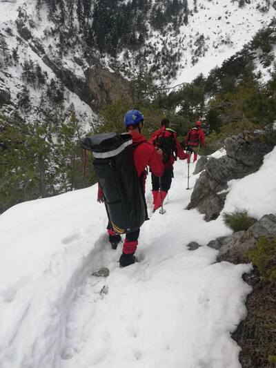 Εικόνες από το σημείο που βρέθηκαν νεκροί οι τρεις ορειβάτες στα Καλάβρυτα έδωσε στη δημοσιότητα η πυροσβεστική.