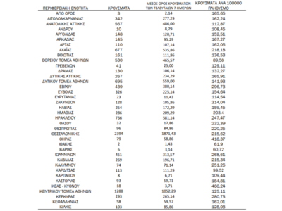 Για ακόμα μια μέρα, η Αττική κατακτά την αρνητική πρωτιά των κρουσμάτων, με τη Θεσσαλονίκη να ακολουθεί… από κοντά, τη στιγμή που αρκετές ακόμα περιοχές προκαλούν έντονη ανησυχία.
