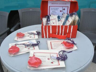 Από τους κεραμίστες του Εικαστικού Εργαστηρίου έχουν κατασκευαστεί αναμνηστικά ρόδια τα οποία μαζί με ένα ευχαριστήριο του Πολιτιστικού Οργανισμού δίνονται από το πρωί της Τρίτης σε όσους προσφέρουν αίμα. Τα κεραμικά έχουν δημιουργήσει οι εικαστικοί Σπύρος Μεθενίτης, Μαρία Κανελλοπούλου, Παναγιώτα Κοντόγεωργα και Θοδώρα Μόρφη.