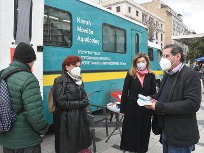 Με τους καλύτερους οιωνούς ξεκίνησε το πρωί της Τρίτης 8 Φεβρουαρίου στην πλατεία Γεωργίου, το τετραήμερο αιμοδοσίας που διοργανώνει ο Πολιτιστικός Οργανισμός του Δήμου Πατρέων και η αντιδημαρχία Υγείας - Πρόνοιας, στη μνήμη του μεγάλου πατρινού συνθέτη Θάνου Μικρούτσικου, σε συνεργασία με την οικογένεια του, το Εθνικό Κέντρο Αιμοδοσίας και τη Μονάδα Αιμοληψίας του Πανεπιστημιακού Περιφερειακού Νοσοκομείο Ρίου.