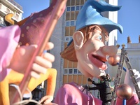 Απέναντί της οι μπάστακες- κατασκευές του Καρναβαλικού Εργαστηρίου ως μουσικοί-μέλη μιας ευφρόσυνης μπάντας σε κίνηση και ζογκλέρ-ακροβάτες «παίζουν» τα χαρούμενα τραγούδια και σκοπούς, αυτούς που γιορτάζουν τον ερχομό της Άνοιξης και του Καρναβαλιού.