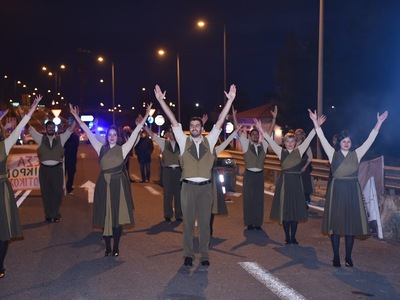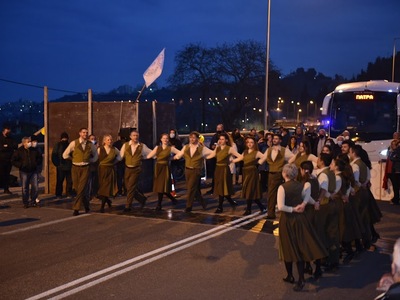 Το δικό του τόνο έδωσε, το Σάββατο 12 Φλεβάρη, στο μπλόκο των αγροτών στο Αίγιο, το χορευτικό τμήμα του Πολιτιστικού Οργανισμού του Δήμου Πατρέων.