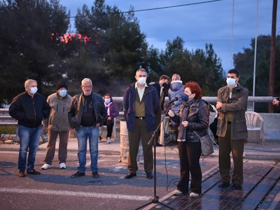 Μαζί τους η Πρόεδρος του Πολιτιστικού Οργανισμού, Κατερίνα Γεροπαναγιώτη και το μέλος του Δ.Σ., Ανδρέας Μάζης που εξέφρασαν την αλληλεγγύη τους στον αγώνα των βιοπαλαιστών αγροτοκτηνοτρόφων. Ο πρόεδρος του αγροτικού συλλόγου, Γιάννης Μποδιώτης, τους ευχαρίστησε για τη στήριξη.