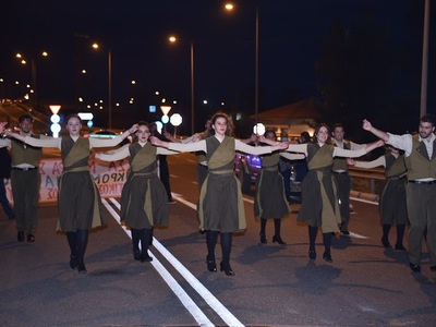 Σε ρυθμούς μελοποιημένης ποίησης Βάρναλη, Αγγουλέ, και Ρίτσου, τα μέλη του Χορευτικού, χόρεψαν και στήριξαν τον δίκαιο αγώνα των αγροτών που διεκδικούν, μεταξύ άλλων, το χαμένο εισόδημα για τη σταφίδα, κατώτατες εγγυημένες τιμές για κάλυψη του κόστους παραγωγής, καμιά περικοπή ενισχύσεων, επιδοτήσεις, αφορολόγητο πετρέλαιο, μείωση του ρεύματος, κατάργηση ΦΠΑ σε μέσα και εφόδια, καθώς και το σύνολο των αποζημιώσεων του ΕΛΓΑ.