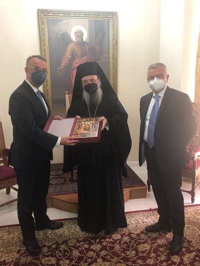 Ο Σεβασμιώτατος εδέχθη με χαρά και τιμή τον κ. Υπουργό, ο οποίος εξέφρασε τον σεβασμό του προς την Εκκλησία και προς το πρόσωπο του Μητροπολίτου.