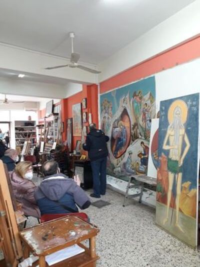 Η πρώτη συνάντηση έγινε στο διδακτήριο της σχολής Αγιογραφίας Ι. Μ. Πατρών από τον δάσκαλο κ. Λαμπρινάκο Πέτρο υπό την οργάνωση της συζύγου του Ευγενίας Αδαμοπούλου.
